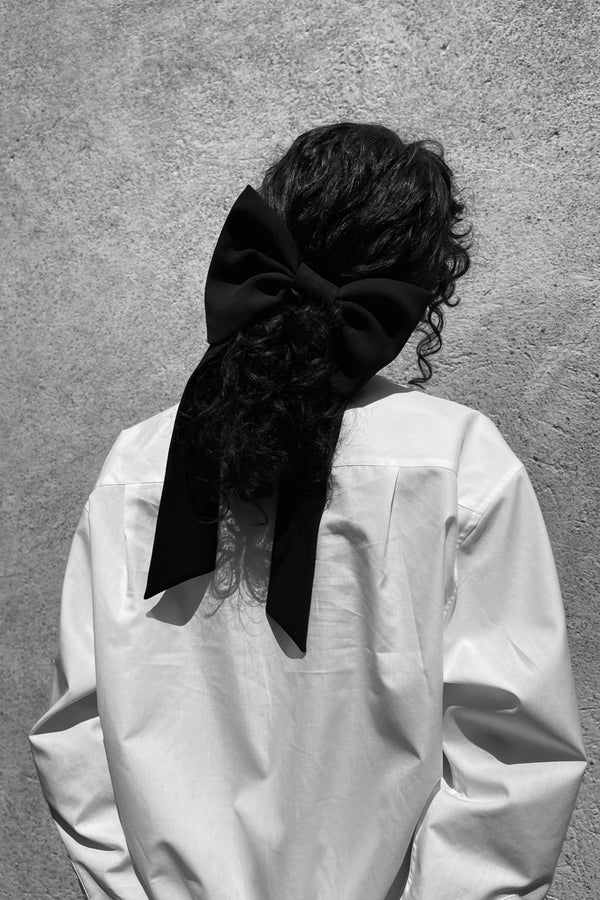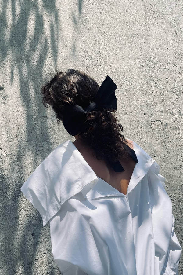 BOW HAIR CLIP IN BLACK LINEN