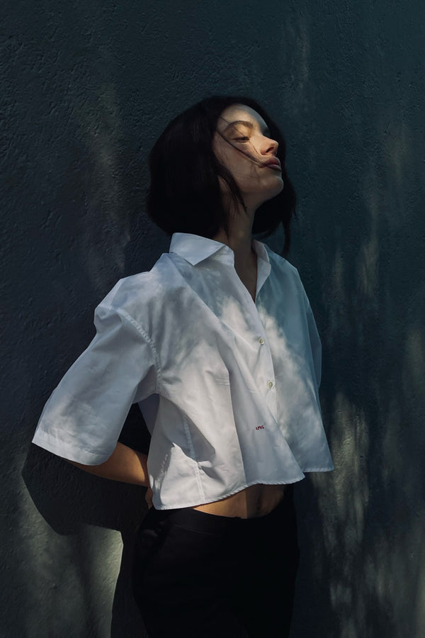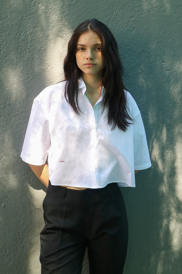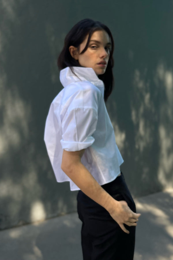 INES CROPPED OVERSIZED SHIRT IN WHITE POPLIN