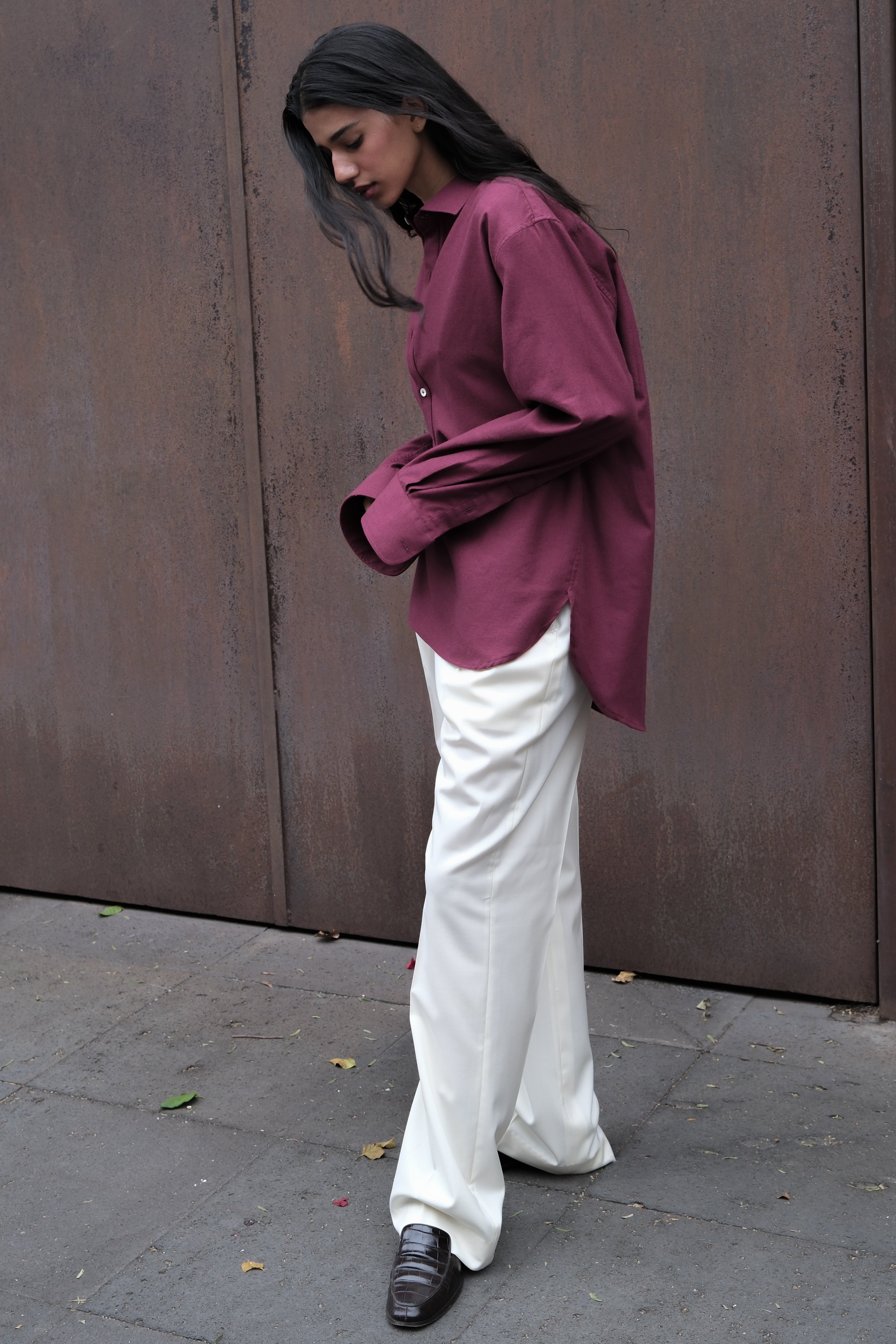 • Extra oversized half button-down