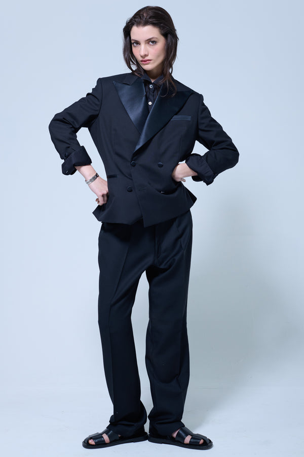 CROPPED DOUBLE BREASTED TUXEDO JACKET