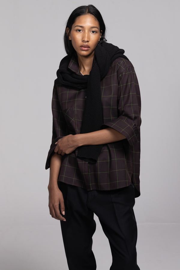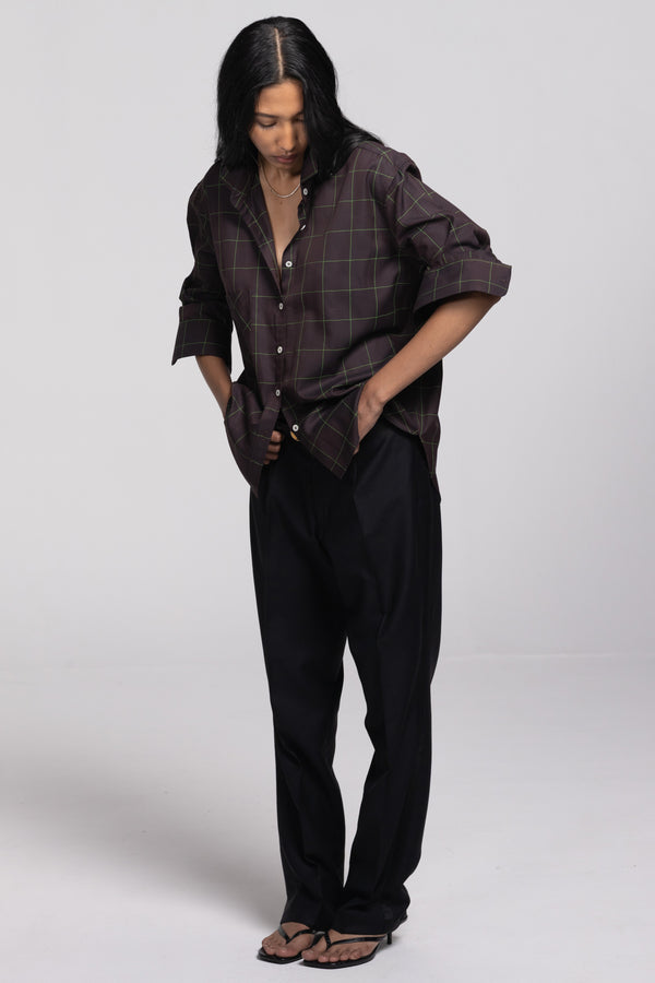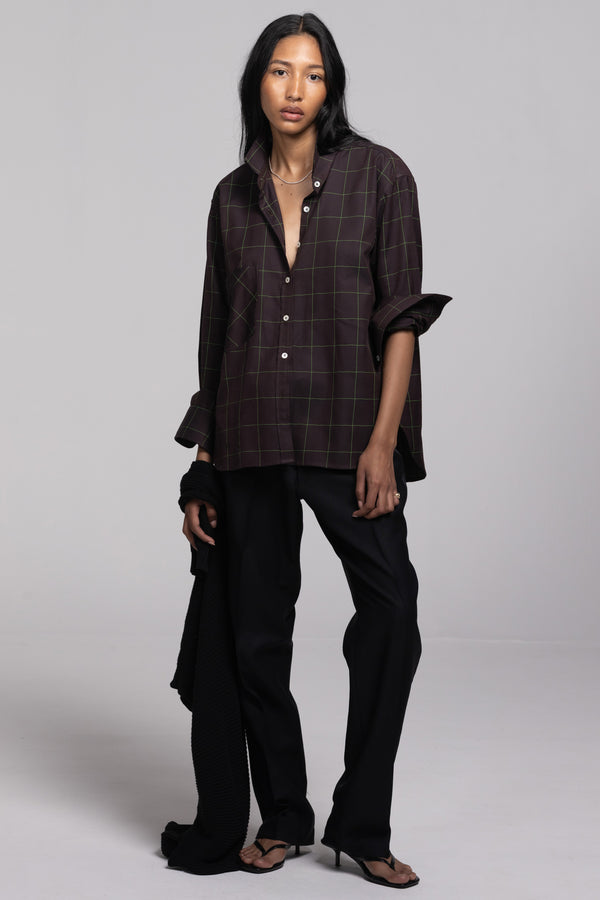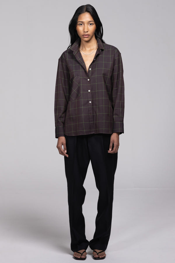 LEA RELAXED BUTTON-DOWN IN CHOCOLATE TWILL