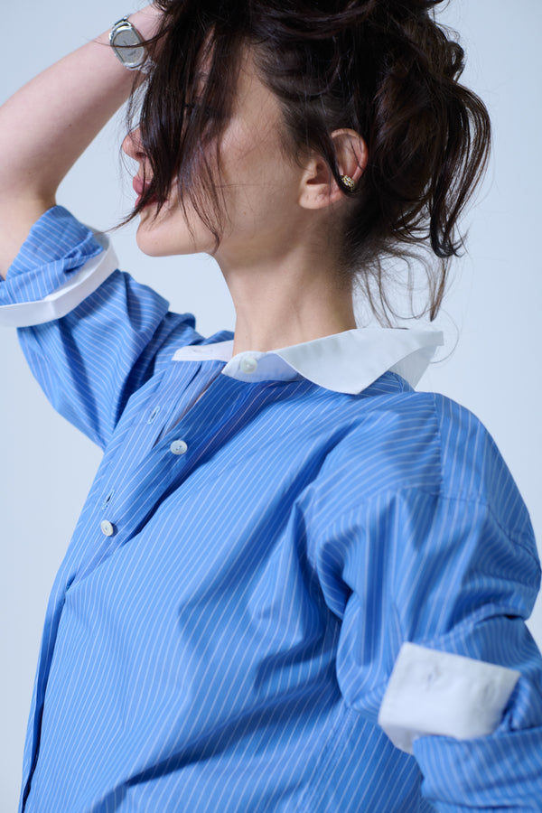 INES OVERSIZED SHIRT IN STRIPED BLUE POPLIN