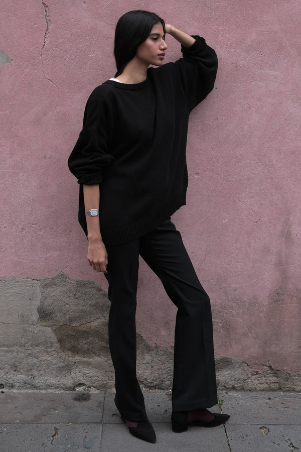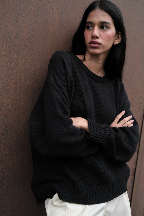 UNISEX KNIT OVERSIZED SWEATER IN BLACK RECYCLED COTTON