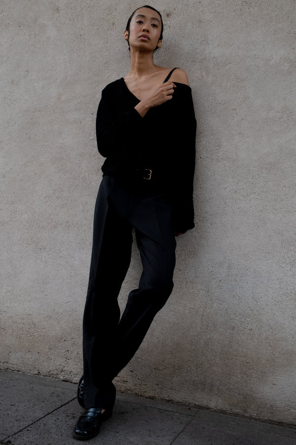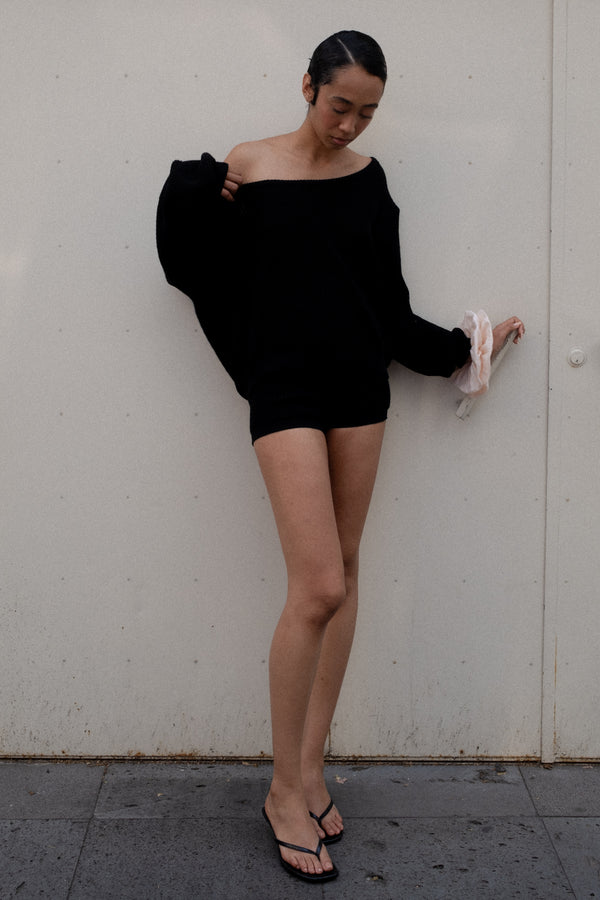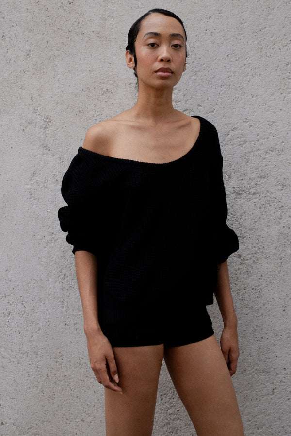 KNIT BALLET SWEATER IN BLACK RECYCLED COTTON