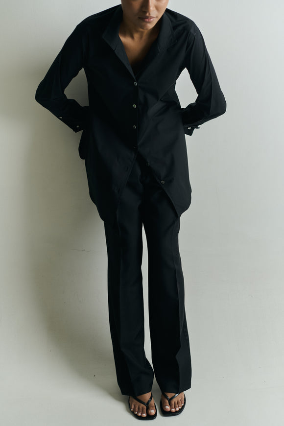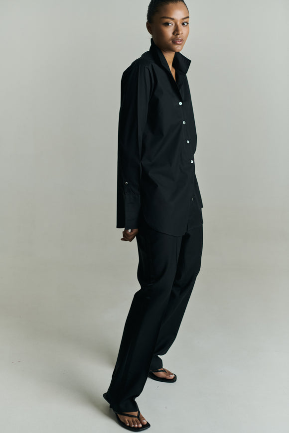 WOOL MID RISE TROUSER IN BLACK