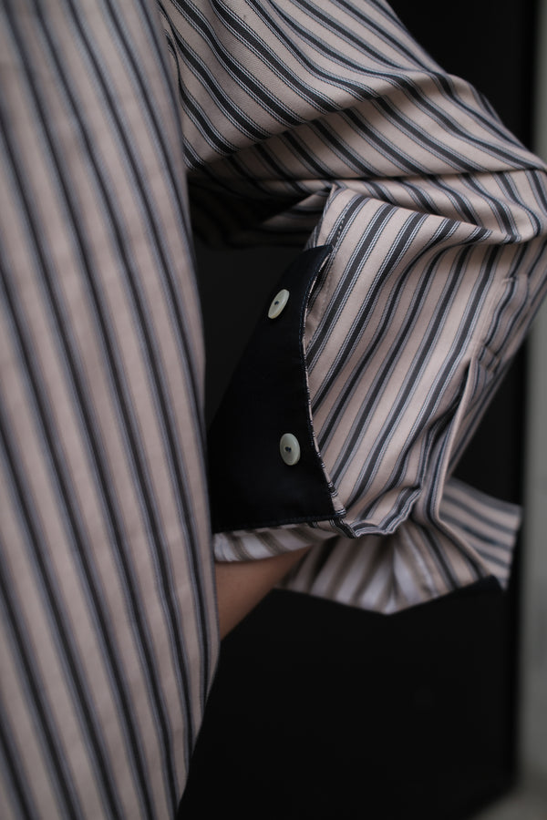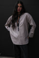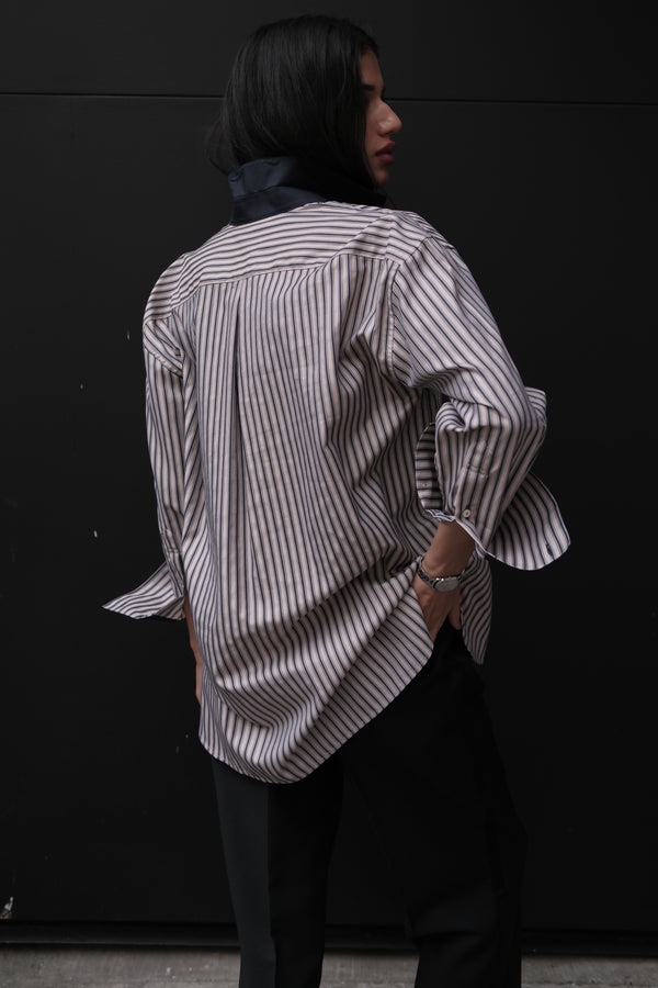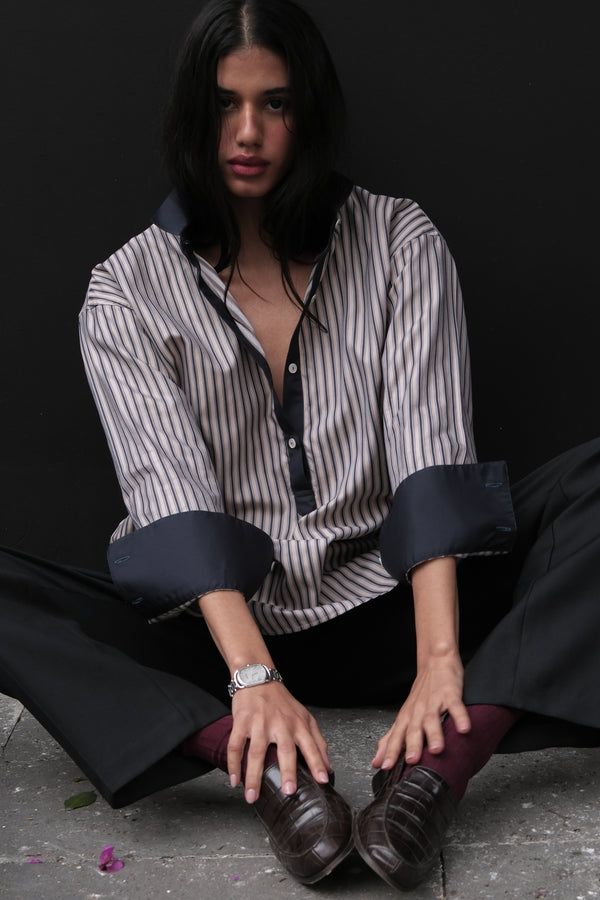 BETI RUGBY OVERSIZED SHIRT IN CHARCOAL & BEIGE STRIPES