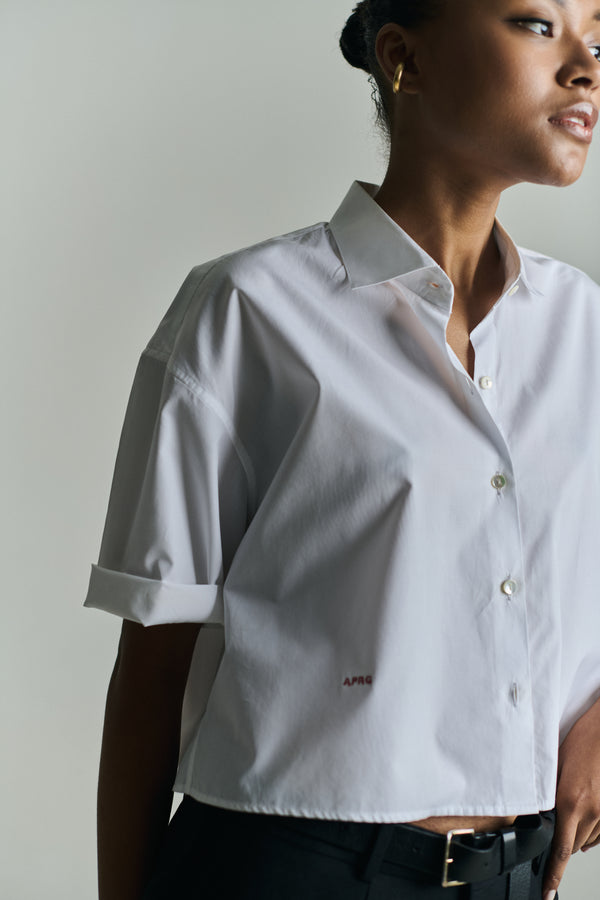 INES CROPPED OVERSIZED SHIRT IN WHITE POPLIN