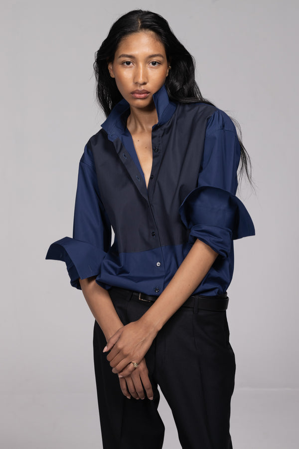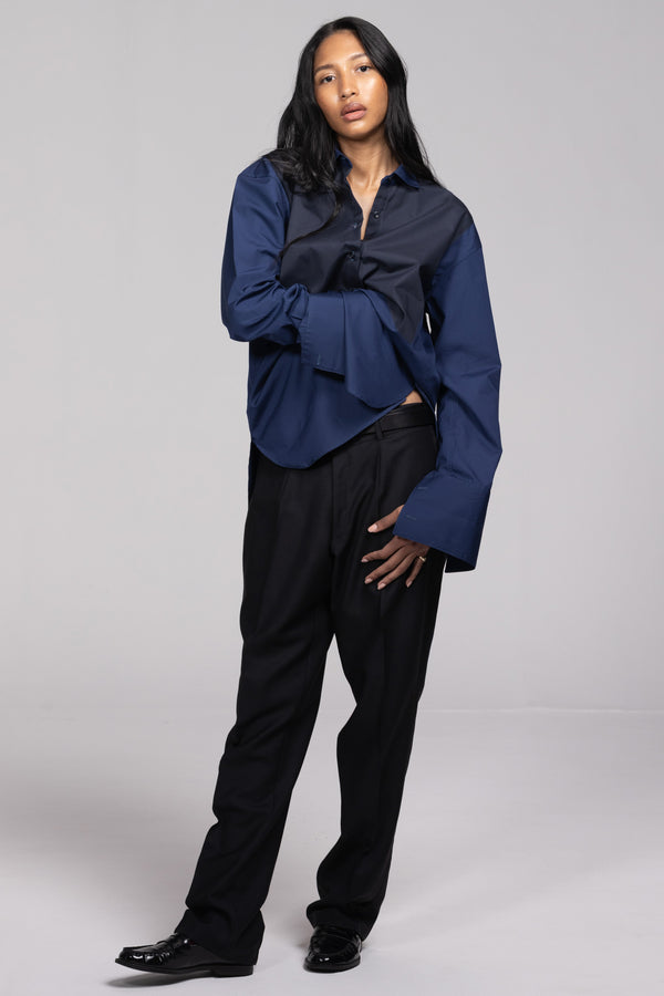 INES OVERSIZED TUXEDO SHIRT IN NAVY