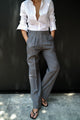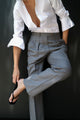 Orders placed now ship between December 1st - December 15th. If you would like these pants adjusted to your measurements please provide the measurement of your true waist, in inches and the circumference of the widest part of your hips, also in inches. Also, please include your desired inseam length as well. These can be added to the notes section at checkout—and for any questions please email me Olivia@ChavaStudio.com.